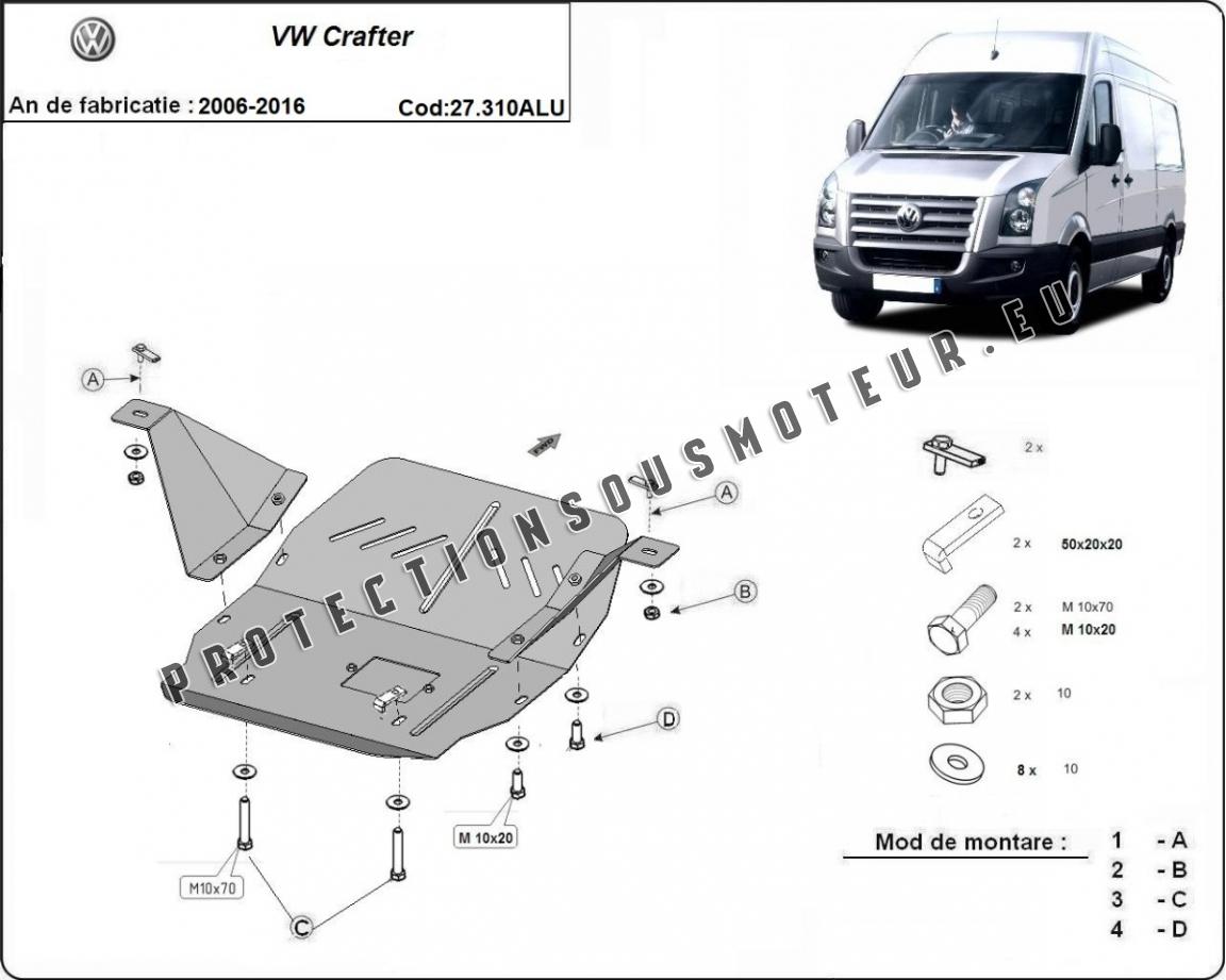 Protection sous moteur et de la boîte de vitesse Volkswagen Crafter - Aluminium (2006-2016)