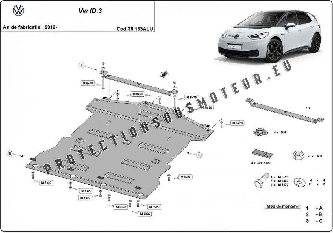 Protection sous moteur et de la boîte de vitesse Volkswagen ID.3 Aluminium (2019-2025)