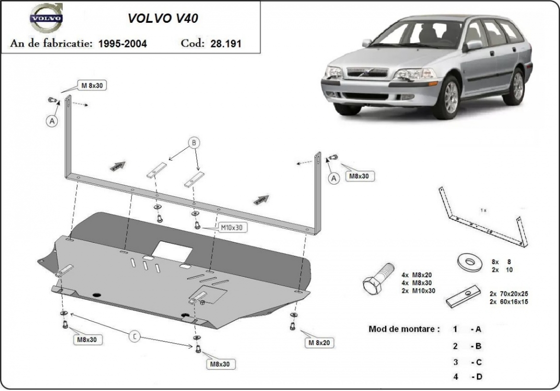 Protection sous moteur et de la boîte de vitesse Volvo V40 (1995-2004)
