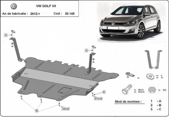 Protection sous moteur et de la boîte de vitesse VW Golf 7 - boîte de vitesses manuelle