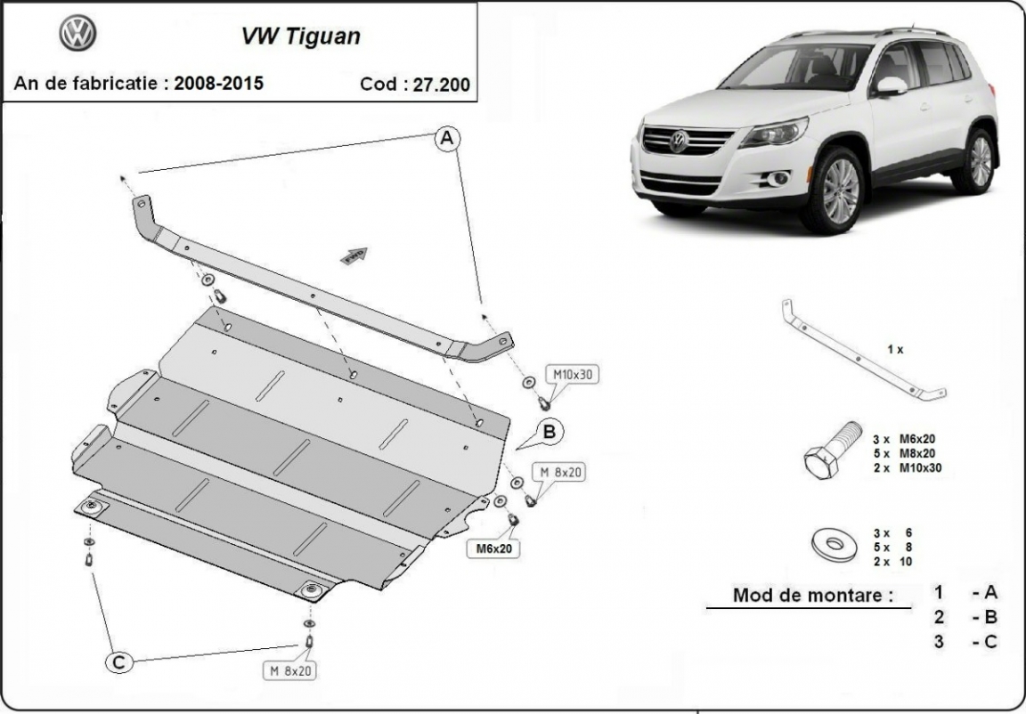 Protection sous moteur et de la boîte de vitesse VW Tiguan (2008-2015)