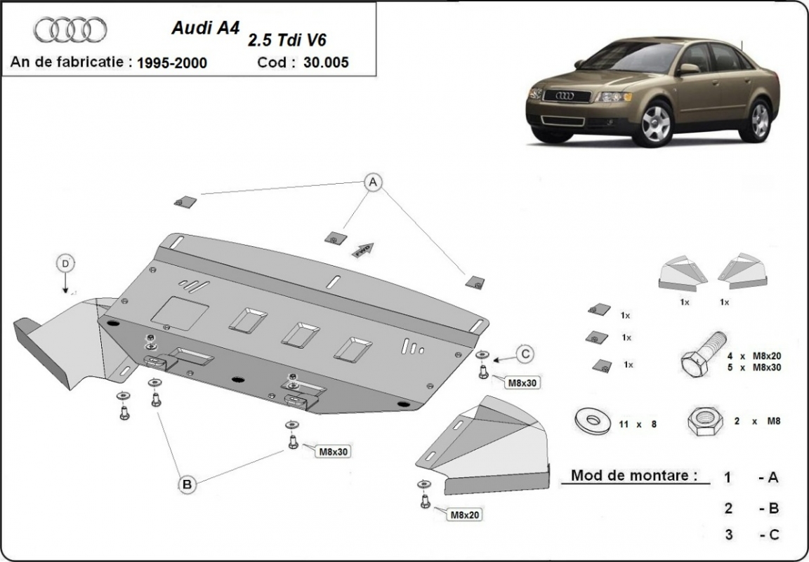 Protection sous moteur et de la radiateur Audi A4 B5 (1997-2000)