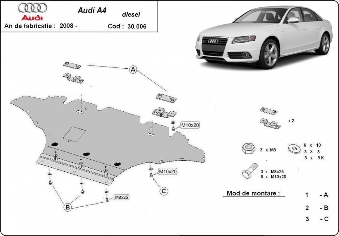 Protection sous moteur et de la radiateur Audi A4 B8 All Road diesel (2008-2014)
