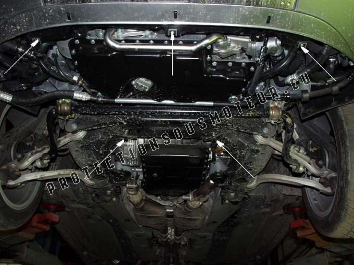 | Protège | le bas du moteur, radiateur, pare-choc avant |