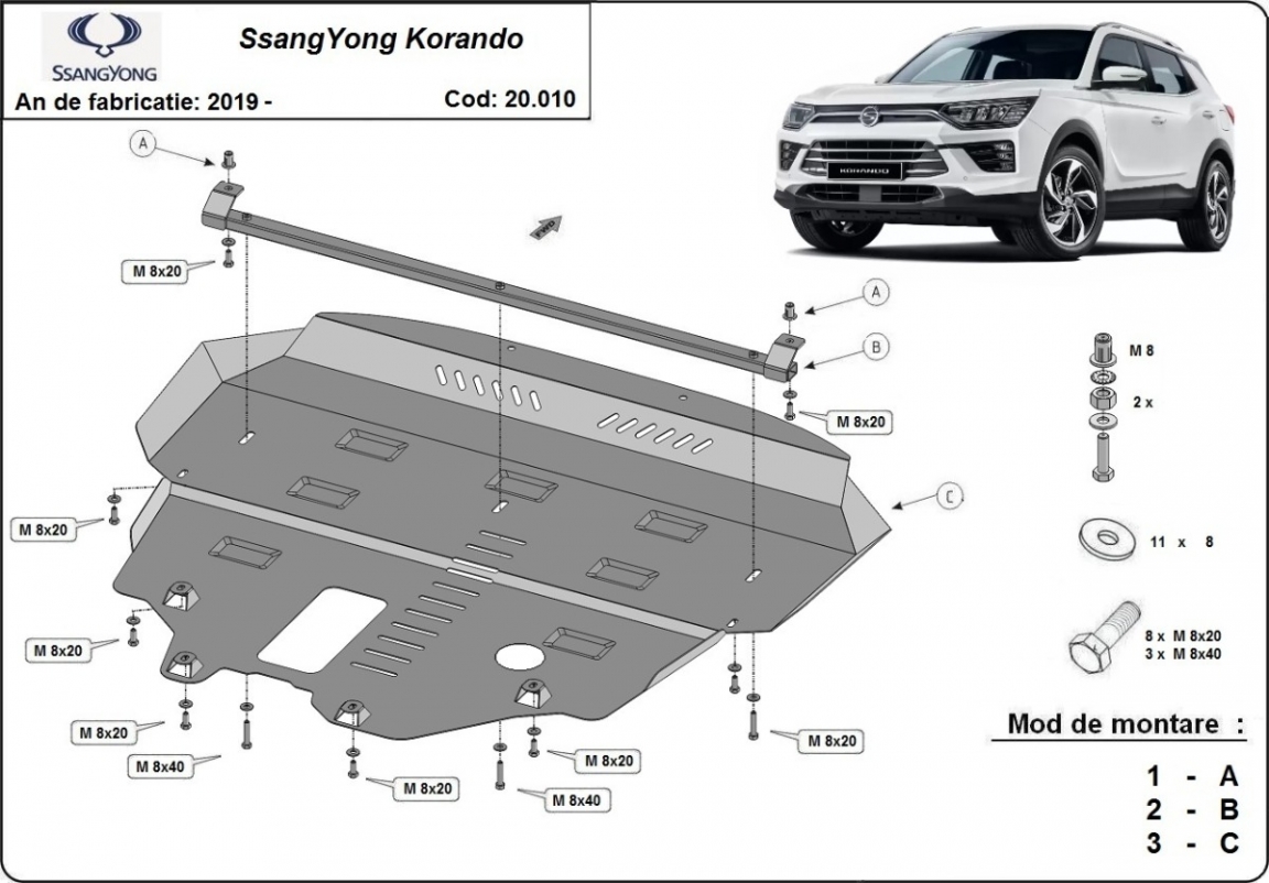 Protection sous moteur et de la radiateur SsangYong Korando (2019-2026)