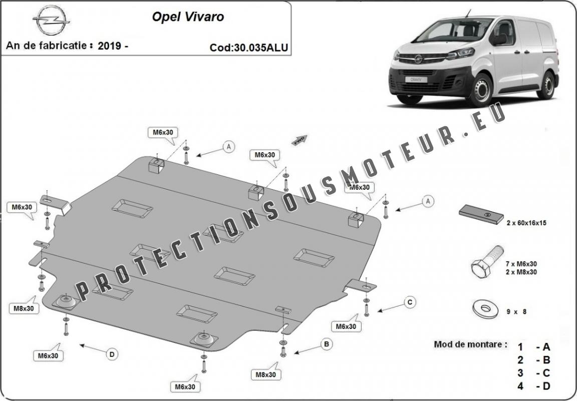 Protection sous moteur et de la boîte de vitesse Opel Vivaro - Aluminium (2019-2026)