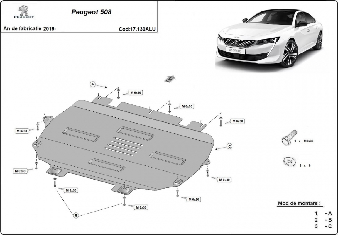 | Chaque voiture a des trous de vis fabriqués en usine pour le montage de la plaque de protection, ce qui rend le montage très facile. Vous pouvez le faire vous-même ou à n'importe quel point de service automatique. |