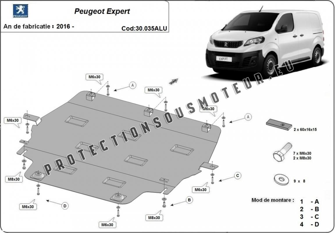 Protection sous moteur et de la boîte de vitesse Peugeot Expert - Aluminium (2016-2026)