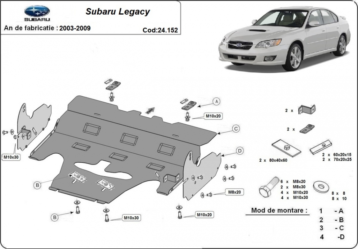 Protection sous moteur Subaru Legacy IV (2003-2009)