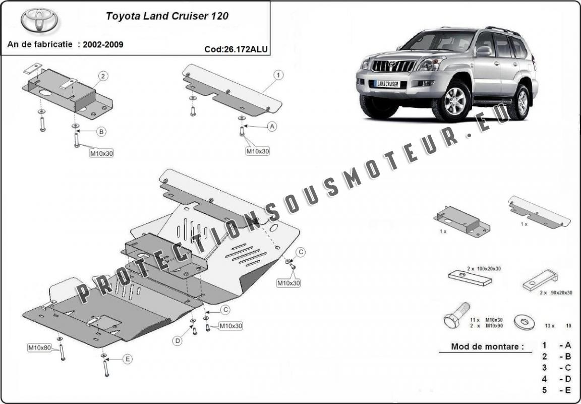 Protection Sous Moteur Toyota Land Cruiser J120 - Aluminium